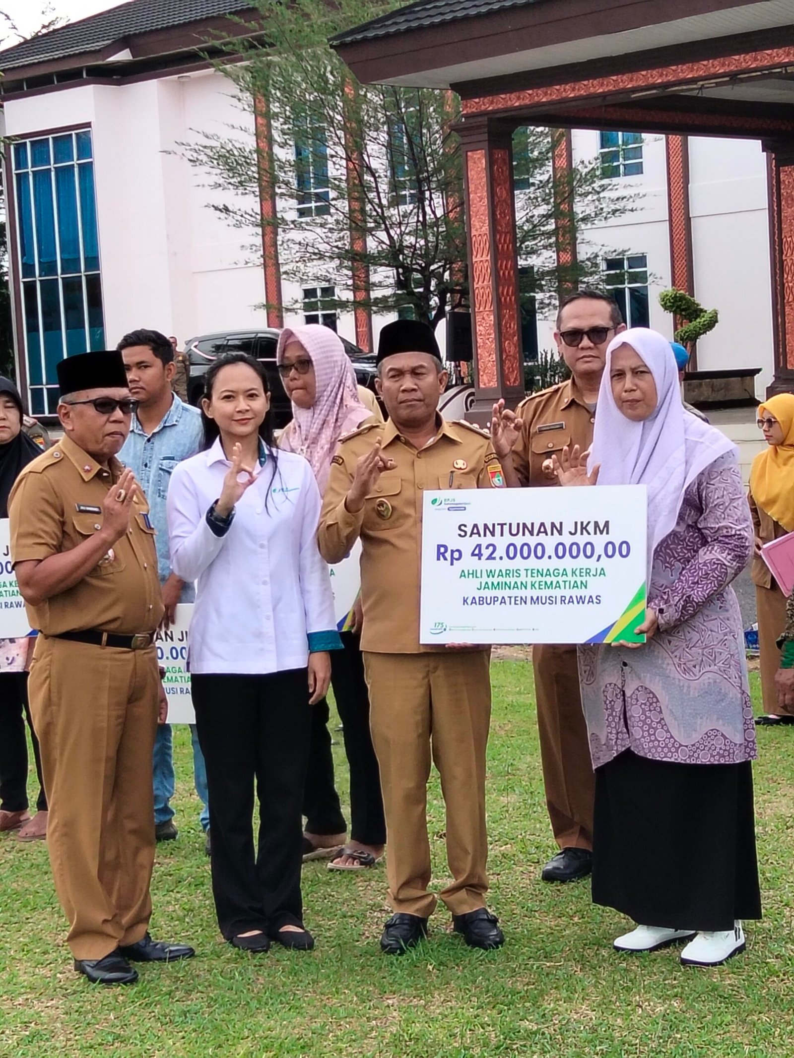 Tidak itu saja Wakil Bupati juga menyerahkan santunan JKM kepada ahli waris dari BPJS.