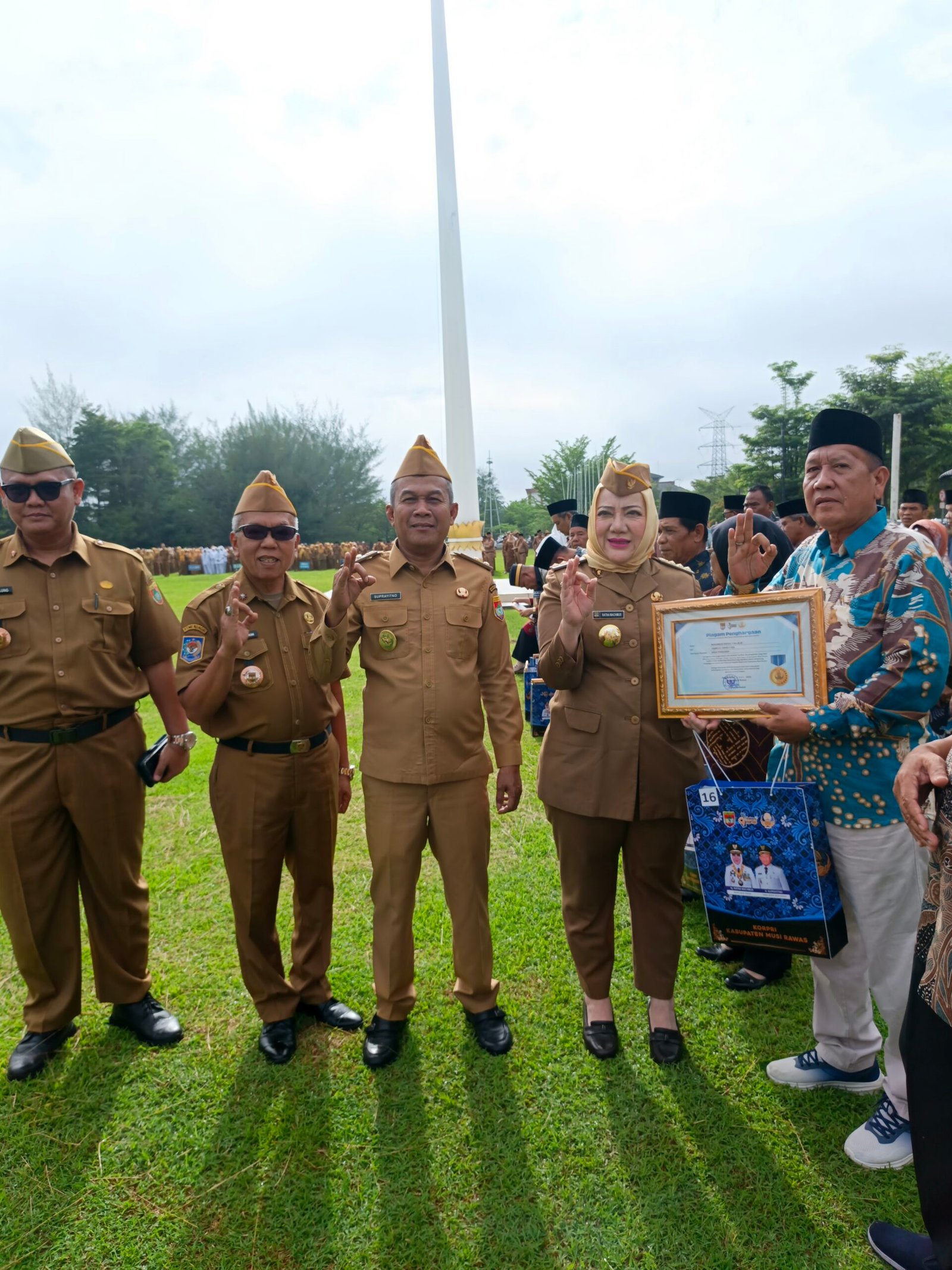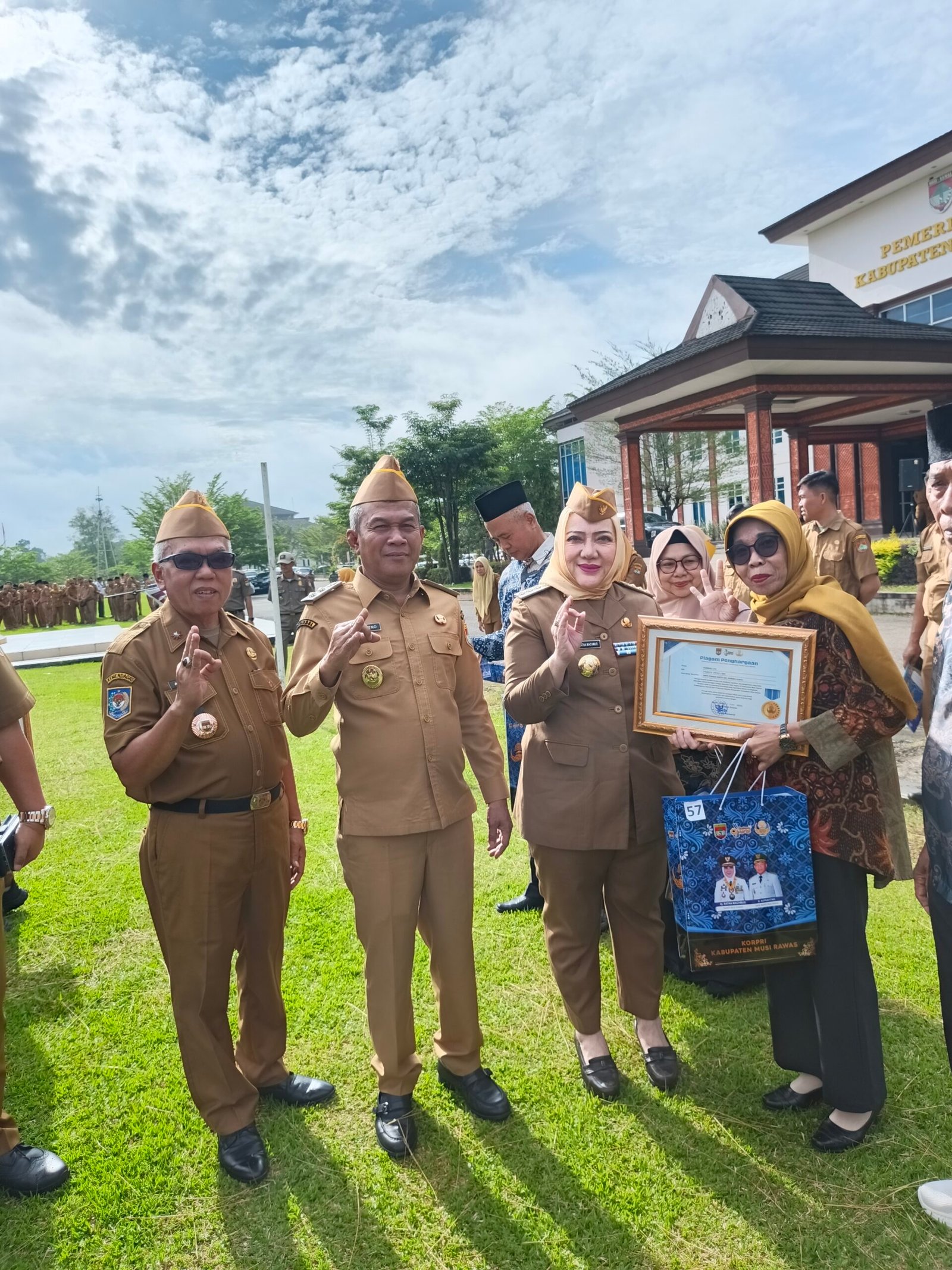 Pemberian Piagam penghargaan dilaksanakan saat apel mingguan di halaman kantor Pemerintah Kabupaten Musi Rawas, Senin (6/4/2026).