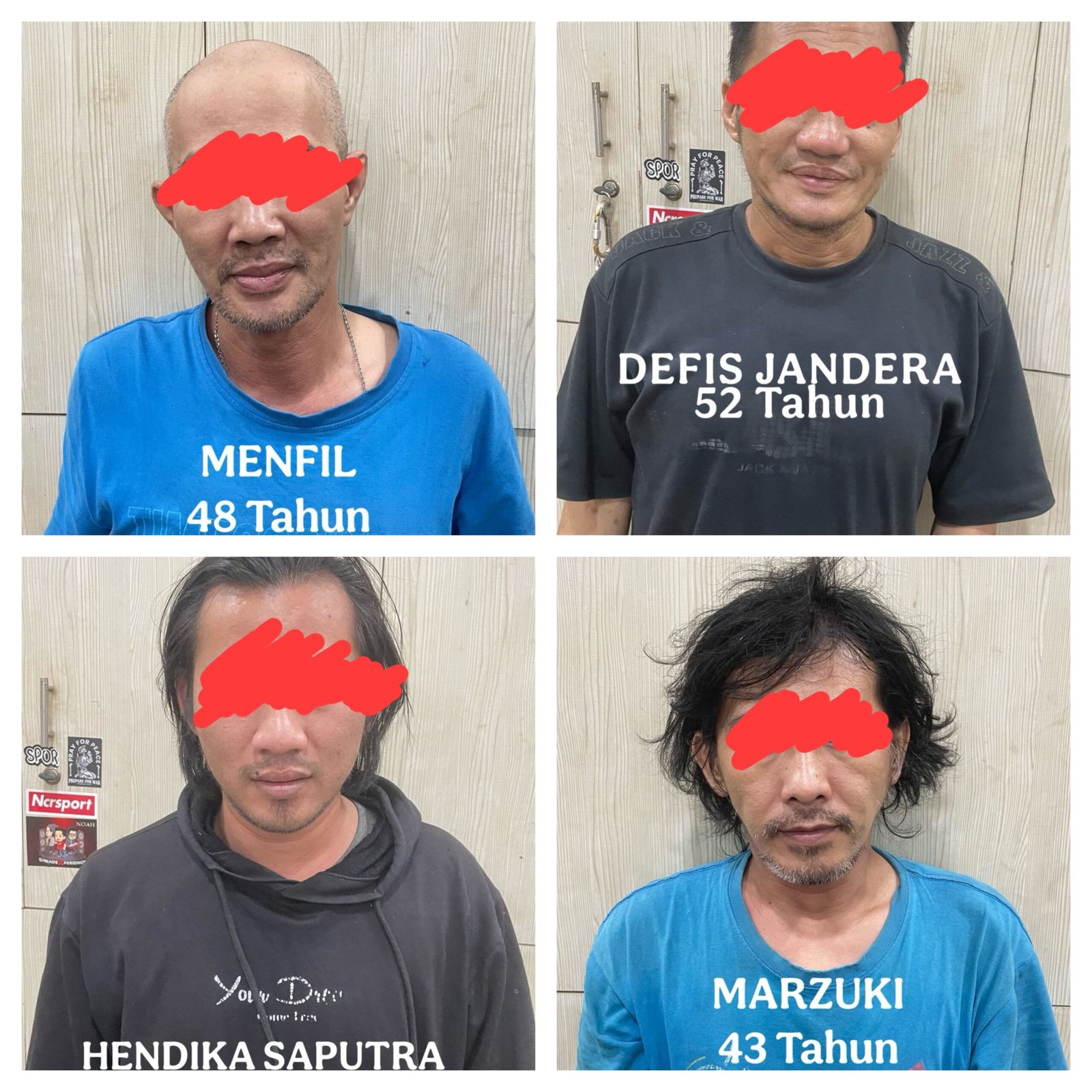 Dalam operasi tersebut, petugas mengamankan empat orang tersangka berinisial MF (48), DJ (51), MZ (43), dan HSH (29). Sementara satu tersangka lainnya berinisial DW (44) ditemukan meninggal dunia setelah terjatuh dari atap bangunan saat berupaya melarikan diri ketika penggerebekan berlangsung.