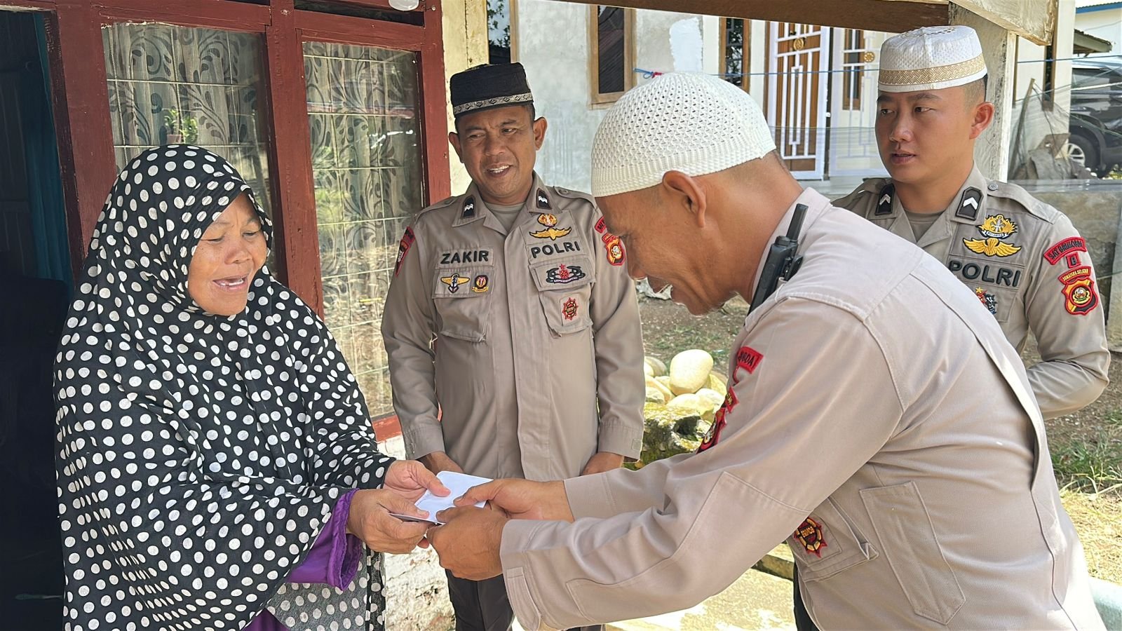 Penyaluran zakat dilakukan secara langsung dengan pendekatan humanis, menciptakan interaksi hangat antara personel Brimob dan masyarakat.
