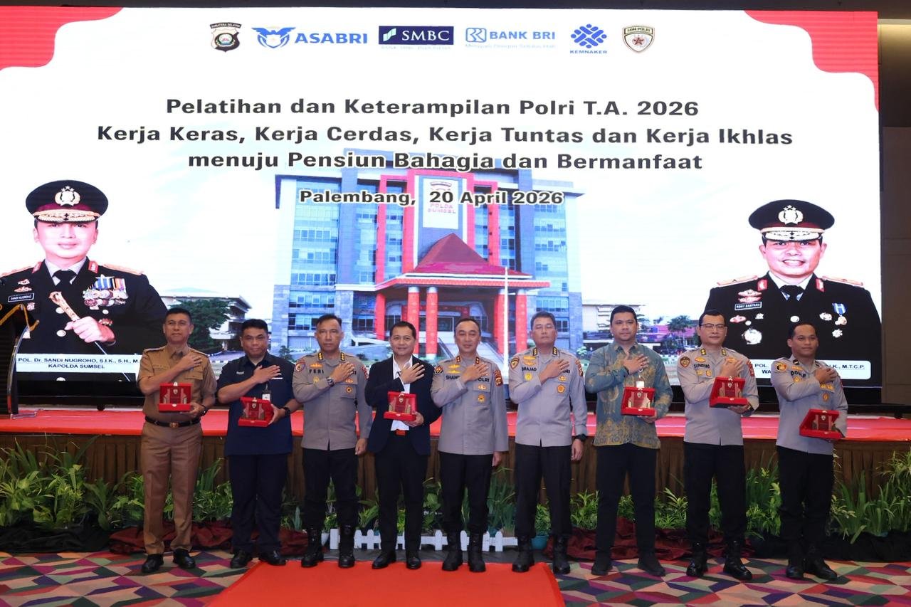 Palembang,Sumselnetwork.com— Polda Sumatera Selatan kembali menunjukkan komitmen strategis dalam pembinaan sumber daya manusia melalui pelaksanaan Pembekalan dan Pelatihan Keterampilan Tahun Anggaran 2026. Kegiatan ini secara resmi dibuka oleh Irjen Pol Dr. Sandi Nugroho, S.I.K., S.H., M.Hum. di Ballroom Hotel The Zuri Palembang, Senin 20 April 2026, dengan diikuti sebanyak 216 personel Polri dan PNS yang akan memasuki masa purna tugas.