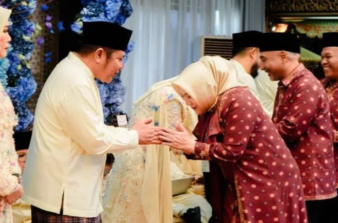 Musi Rawas, Sumselnetwork.com-Usai melaksanakan sholat Idul Fitri 1447 H di Masjid Agung Musi Rawas Darussalam Muara Beliri, Bulati-Wakil Bupati Musi Rawas, Hj Ratna Machmud-H Suprayitno, SH menghadiri ramah tamah bersama Gubernur Sumatera Selatan H. Herman Deru di Griya Agung, Palembang, pada Minggu (22/03/2026).