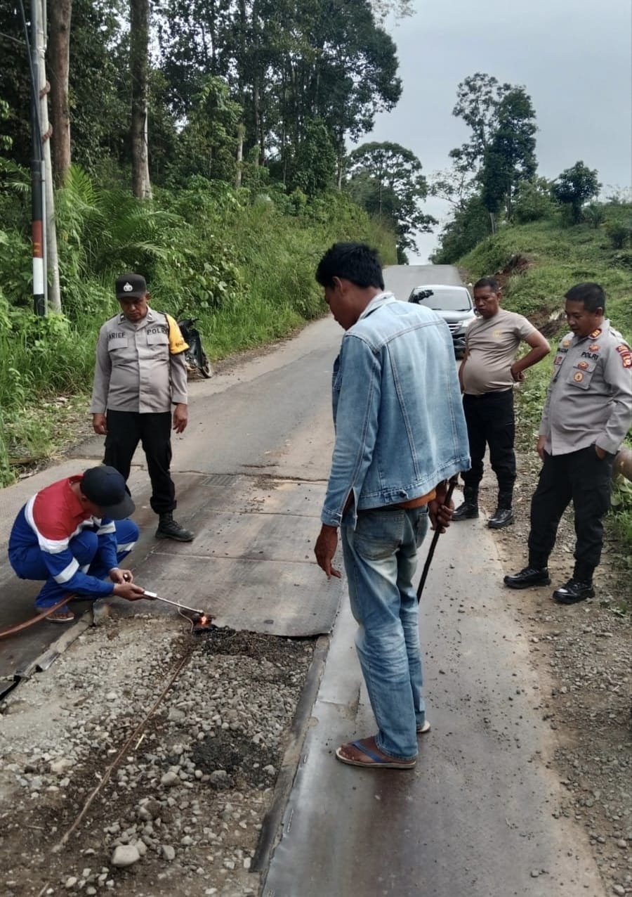 Menindaklanjuti kondisi tersebut, Kapolsek BTS Ulu, AKP Fauzan Aziman, SH bersama personel turun langsung melakukan perbaikan sementara, guna meminimalisir risiko kecelakaan serta memberikan rasa aman dan nyaman bagi pengguna jalan.