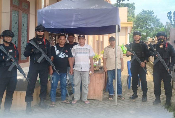 Personel Brimob turut berkoordinasi dengan petugas gabungan guna mendukung pelaksanaan pengamanan dan pelayanan kepada masyarakat.