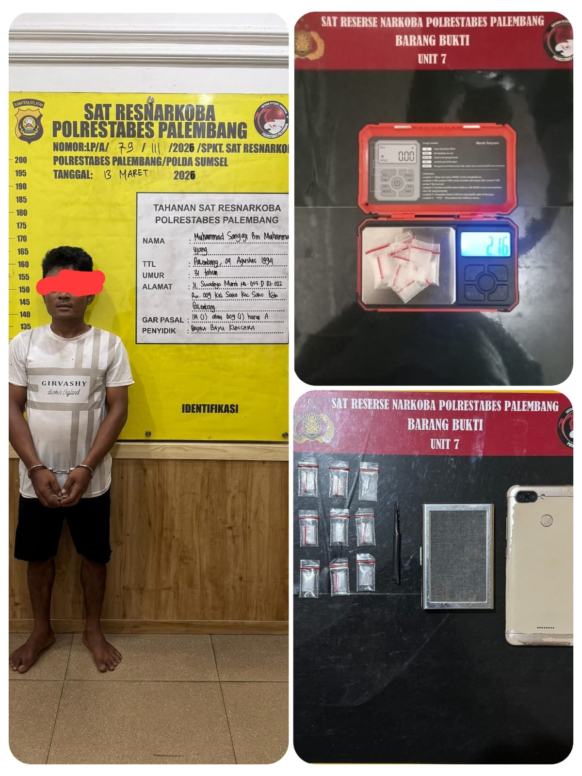 Menindaklanjuti informasi tersebut, Unit VII Satresnarkoba Polrestabes Palembang segera melakukan penyelidikan sebelum akhirnya melakukan penggerebekan dini hari.