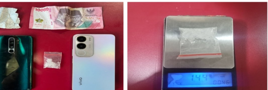 Dari hasil penggeledahan, petugas mengamankan satu paket sabu seberat bruto 1,44 gram yang dibungkus kertas timah rokok, serta satu unit telepon genggam yang diduga digunakan untuk transaksi.