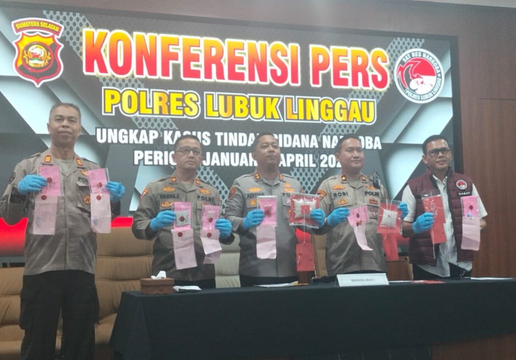 Kapolres Lubuk Linggau AKBP Adithia Bagus Arjunadi menjelaskan barang bukti yang disita atau diamankan untuk medio Januari hingga April 2026.