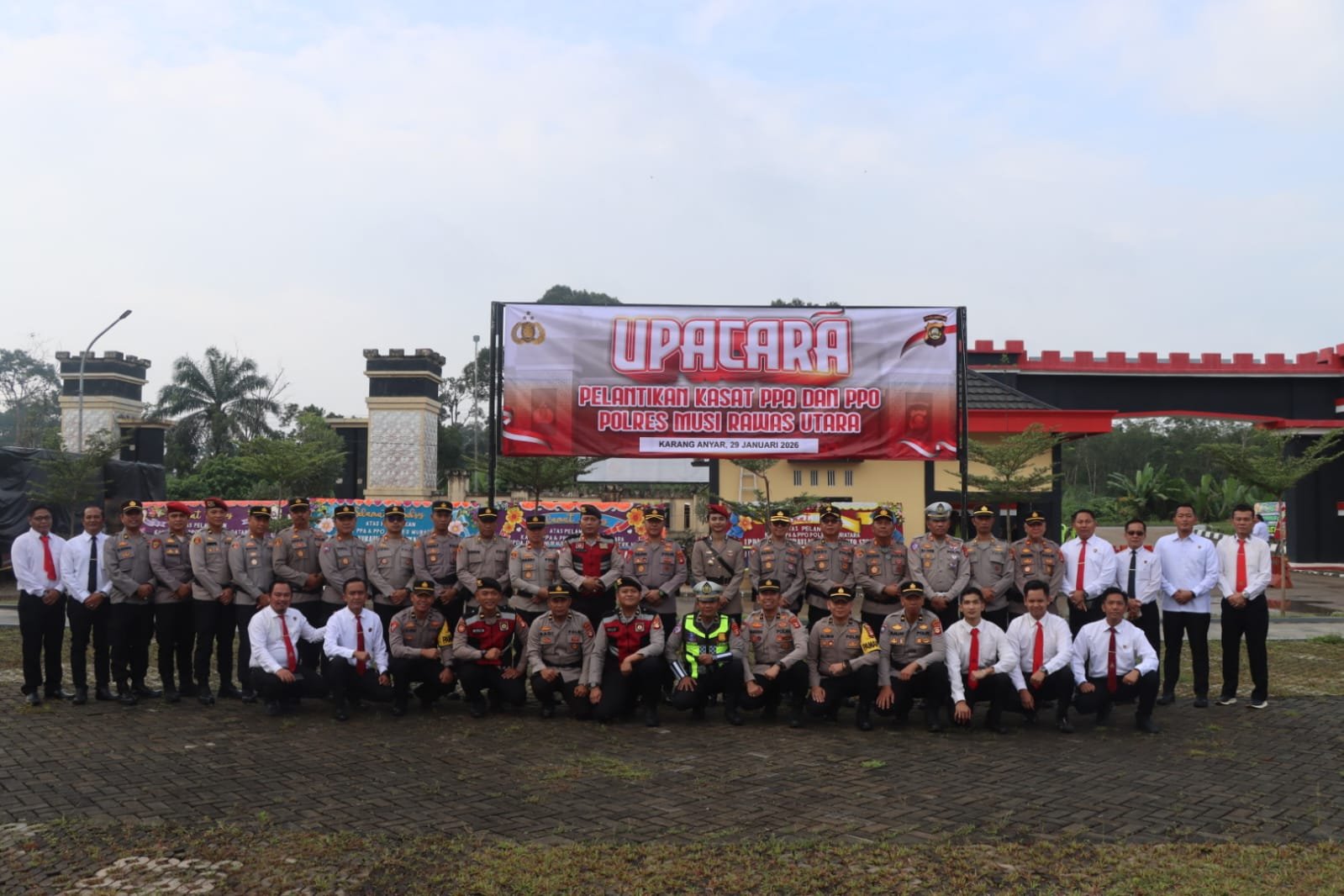 Pelantikan berlangsung di halaman Mapolres Musi Rawas Utara, Kamis (29/1/2026).
