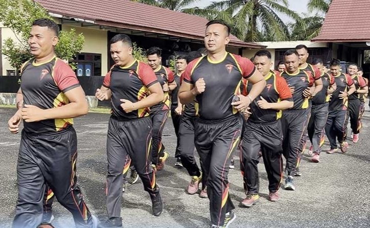 Kegiatan olahraga pagi dilakukan guna menjaga kondisi fisik serta membangun kedisiplinan personel.