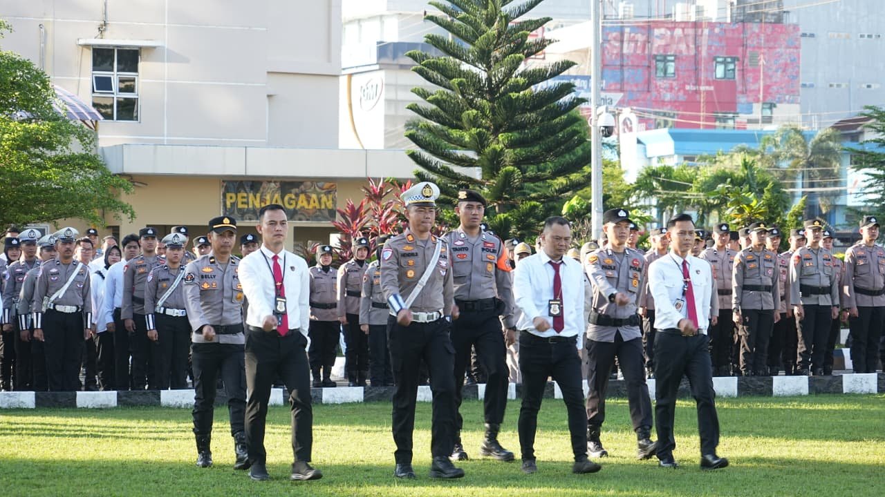 Apel dihadiri Wakapolda Sumatera Selatan Brigjen Pol Rony Samtana, S.I.K., M.T.C.P., Irwasda Polda Sumatera Selatan Kombes Pol Feri Handoko Soenarso, S.H., S.I.K., serta seluruh Pejabat Utama Polda Sumsel dan jajaran. Kegiatan berlangsung khidmat melalui rangkaian upacara, pembacaan keputusan, hingga arahan Kapolda.