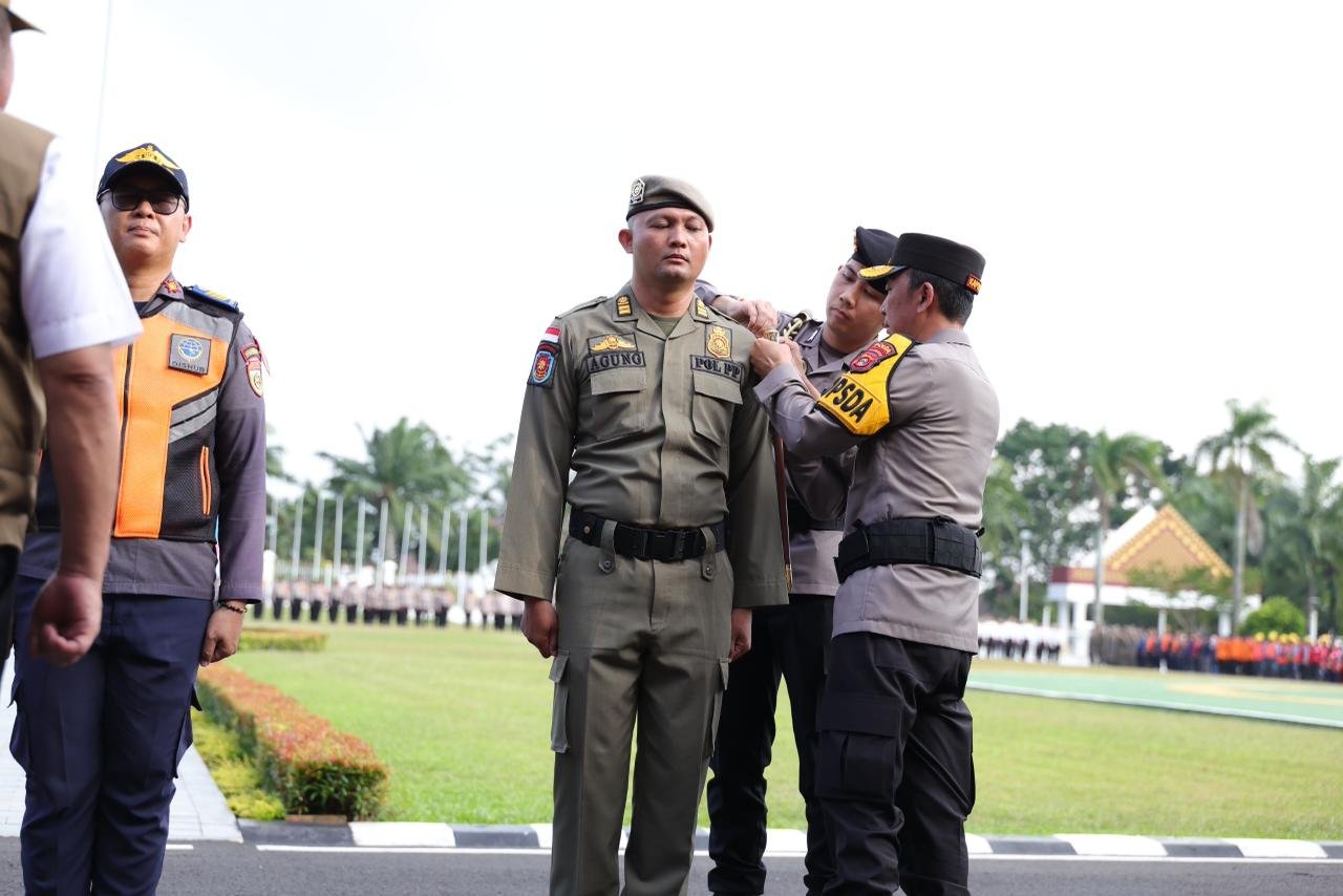 Dalam kegiatan tersebut, Kapolda Sumsel bersama unsur Forkopimda turut melakukan penyematan pita Operasi Ketupat Musi 2026 kepada perwakilan personel sebagai simbol dimulainya operasi pengamanan Lebaran secara resmi.