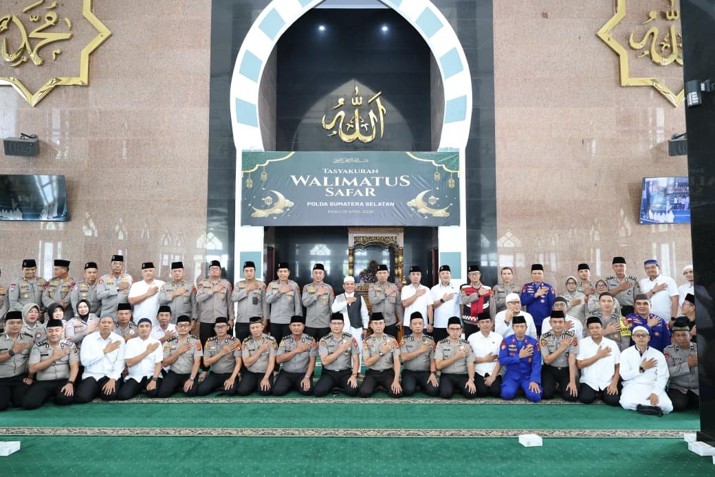 Palembang, Sumselnetwork.com— Kapolda Sumatera Selatan Irjen Pol Dr. Sandi Nugroho, S.I.K., S.H., M.Hum. menegaskan bahwa penguatan mental spiritual merupakan fondasi utama dalam membentuk personel Polri yang profesional, berintegritas, dan humanis. Penegasan tersebut disampaikan saat memimpin kegiatan Tasyakuran Walimatussafar bagi keluarga besar Polda Sumsel yang akan menunaikan ibadah haji musim 1447 H / 2026 M di Masjid Assa’adah Mapolda Sumsel, Rabu (15/4/2026).