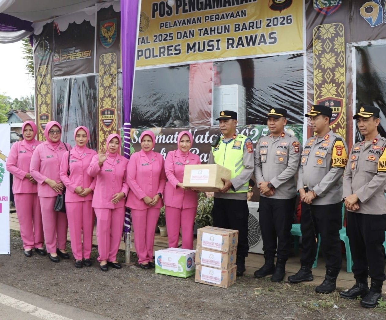 Musi Rawas, Sumselnetwork.com-Kapolres Musi Rawas, AKBP Agung Adhitya Prananta, SH, SIK, MH, bersama Ketua Bhayangkari Cabang Musi Rawas, Ny Diana Agung melakukan pengecekan Pos Pengamanan (Pos Pam) dalam rangka Operasi Lilin Musi 2025.