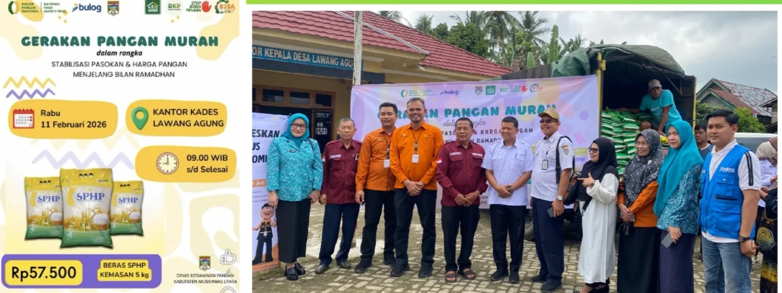 Muratara, Sumselnetwork.com-Pemerintah Kabupaten Musi Rawas Utara (Muratara) melalui Dinas Ketahanan Pangan, didampingi Dinas Perindustrian dan Koprasi (Disprindagkop) Musi Rawas Utara berkolaborasi dengan Bulog Lubuklinggau menyalurkan 5 ton beras