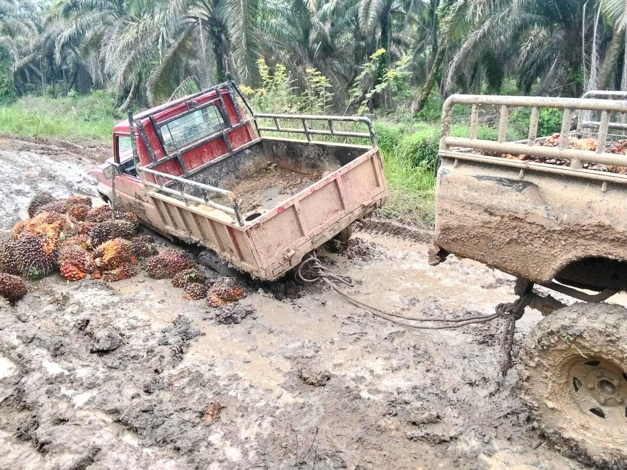 Dengan kondisi jalan yang rusak akibat kendaraan truck dan hiline yang mengangkut TBS inilah kata Buston, membuat masyarakat prihatin. Sebab, jalan tersebut berada di Desa Karya Teladan namun yang merusaknya warga luar desa dan menikmati hasil dari hasil pertanian sawitnya.
