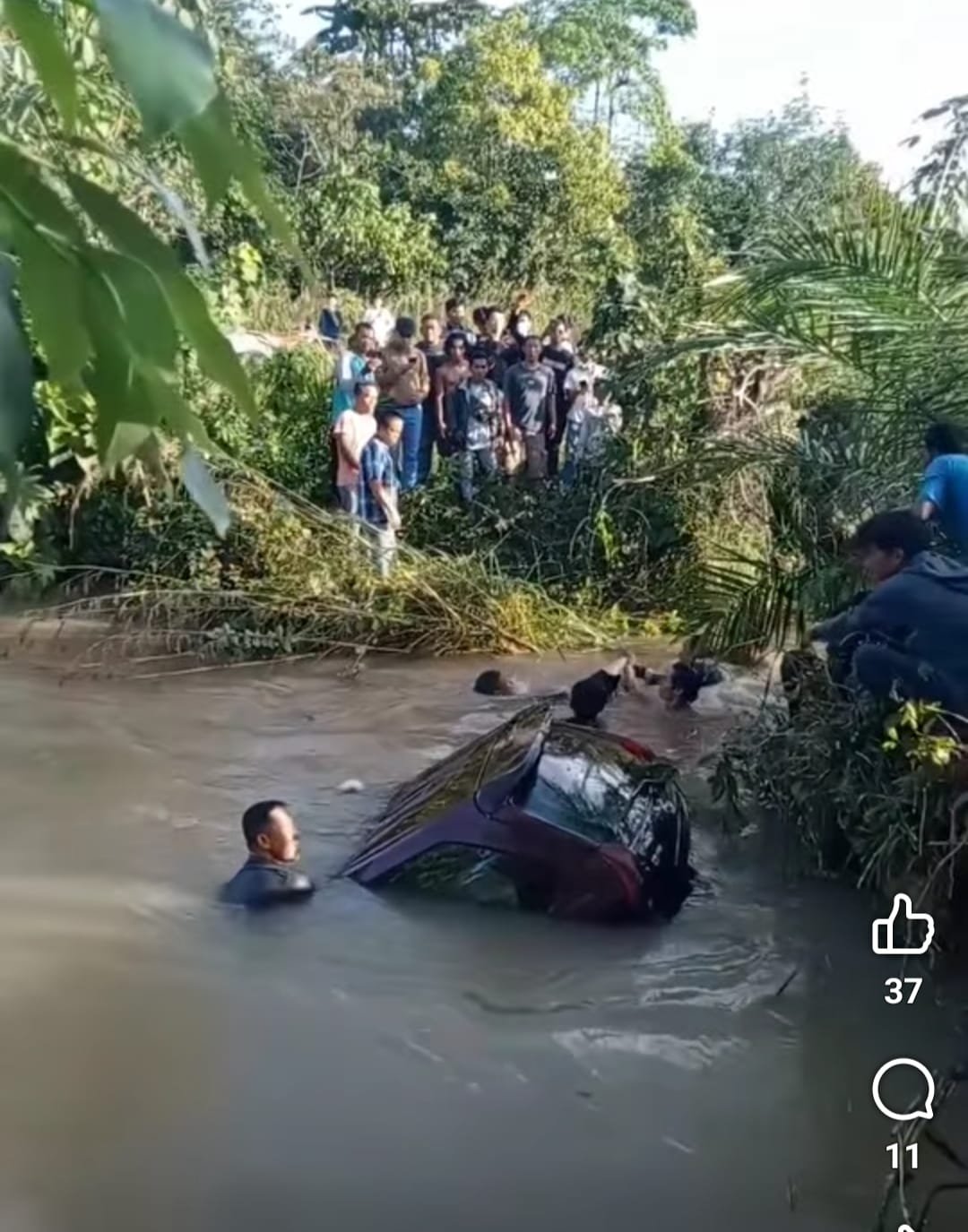 Kemudian setelah itu, mobil yang melebar ke kanan langsung masuk kedalam air Sungai Jernih. Hingga kecelakaan terjadi, dimana hampir seluruh badan mobil nyemplung kedalam sungai dan dua orang dinyatakan meninggal dunia dalam peristiwa tersebut.