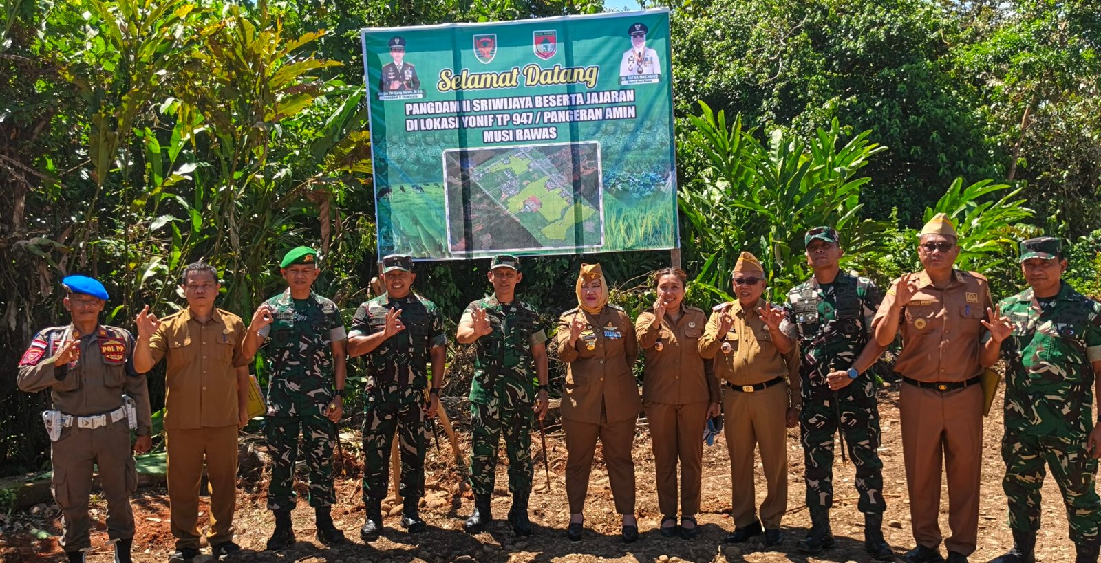 Sementara itu sebelumnya, Bupati Musi Rawas, Hj Ratna Machmud bersama Pangdam II Sriwijaya, Mayjend TNI Ujang Darwis, M. D. A meninjau lokasi akan dibangunnya Yonif TP 947/Pangeran Amin di Desa Durian Remuk, Kecamatan Muara Beliti. Disana Pangdam II Sriwijaya mendapat penjelasan mengenai tanah yang dihibahkan tersebut.