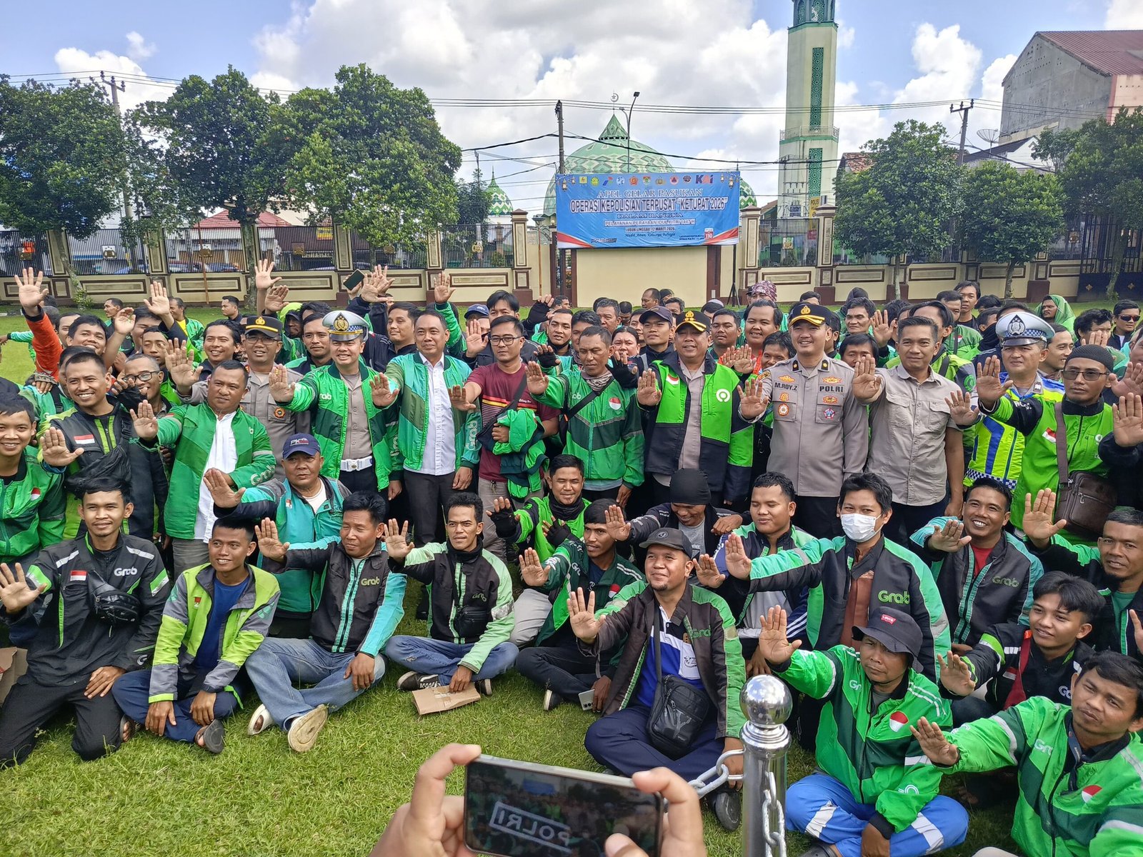 Kapolres menyampaikan bahwa kegiatan ini merupakan bentuk kepedulian dan kebersamaan antara Polres dan Pemerintah Kota Lubuklinggau terhadap para pengemudi ojek online.