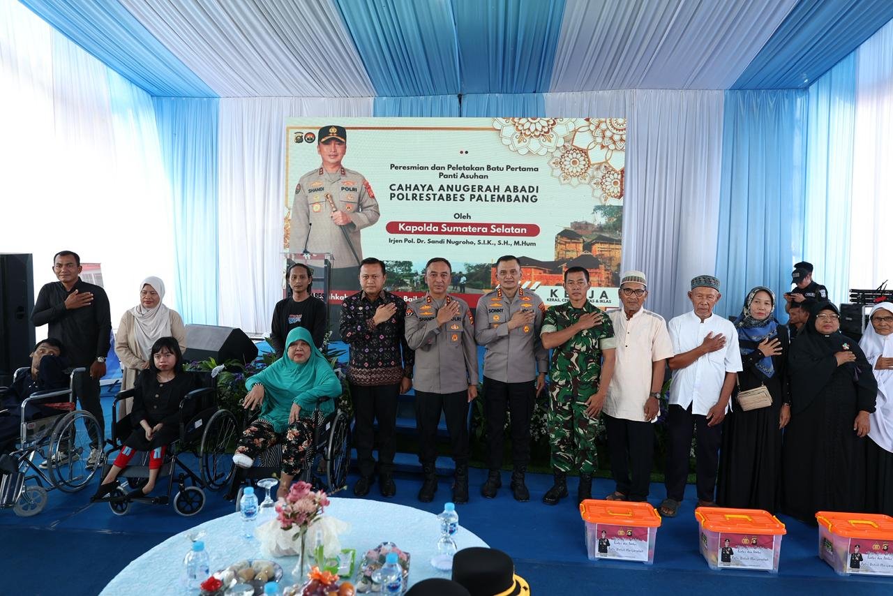 Kapolda Sumsel, Irjen Pol. Dr. Sandi Nugroho, S.I.K., S.H., M.Hum., secara resmi meresmikan Panti Asuhan Cahaya Anugrah Abadi sekaligus melakukan peletakan batu pertama (groundbreaking) pembangunan asrama putra. Kegiatan ini dilaksanakan di wilayah Kecamatan Sematang Borang, Kota Palembang, pada Kamis (16/04/2026).