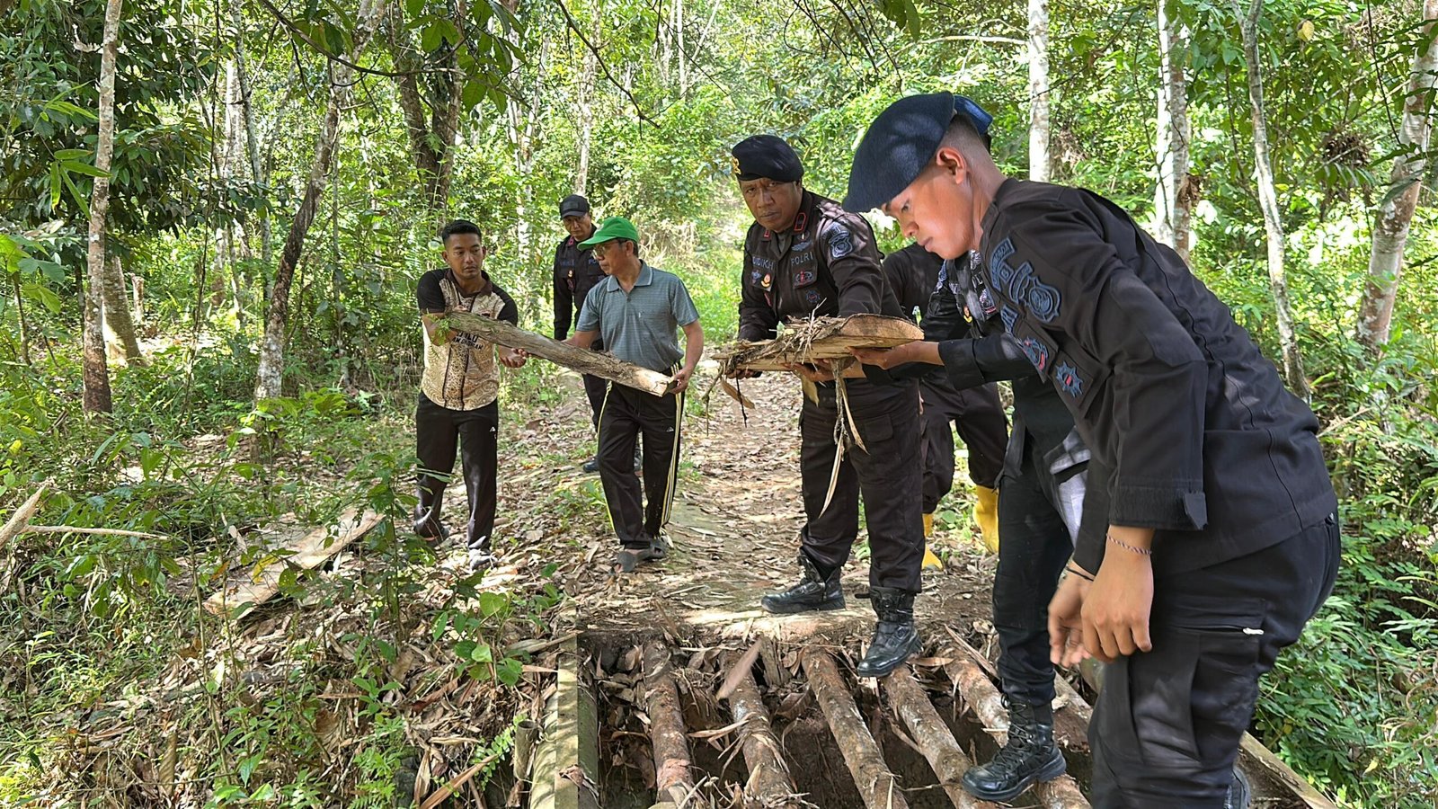 Personel Satbrimob Polda Sumatera Selatan Batalyon B Pelopor kembali menunjukkan komitmennya terhadap pelayanan masyarakat dengan melaksanakan renovasi jembatan di salah satu wilayah terpencil.