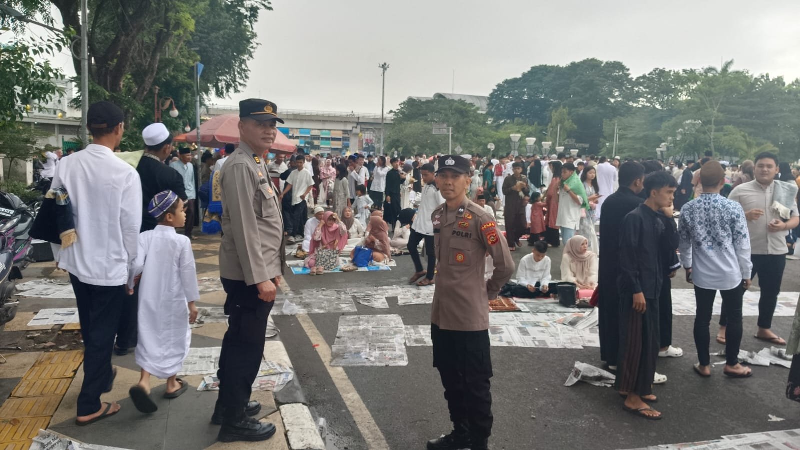 Seluruh jajaran Polda Sumsel, mulai dari tingkat Polres hingga Polsek, turun langsung mengamankan lokasi sholat, mengatur arus lalu lintas, serta melakukan patroli di titik-titik rawan.