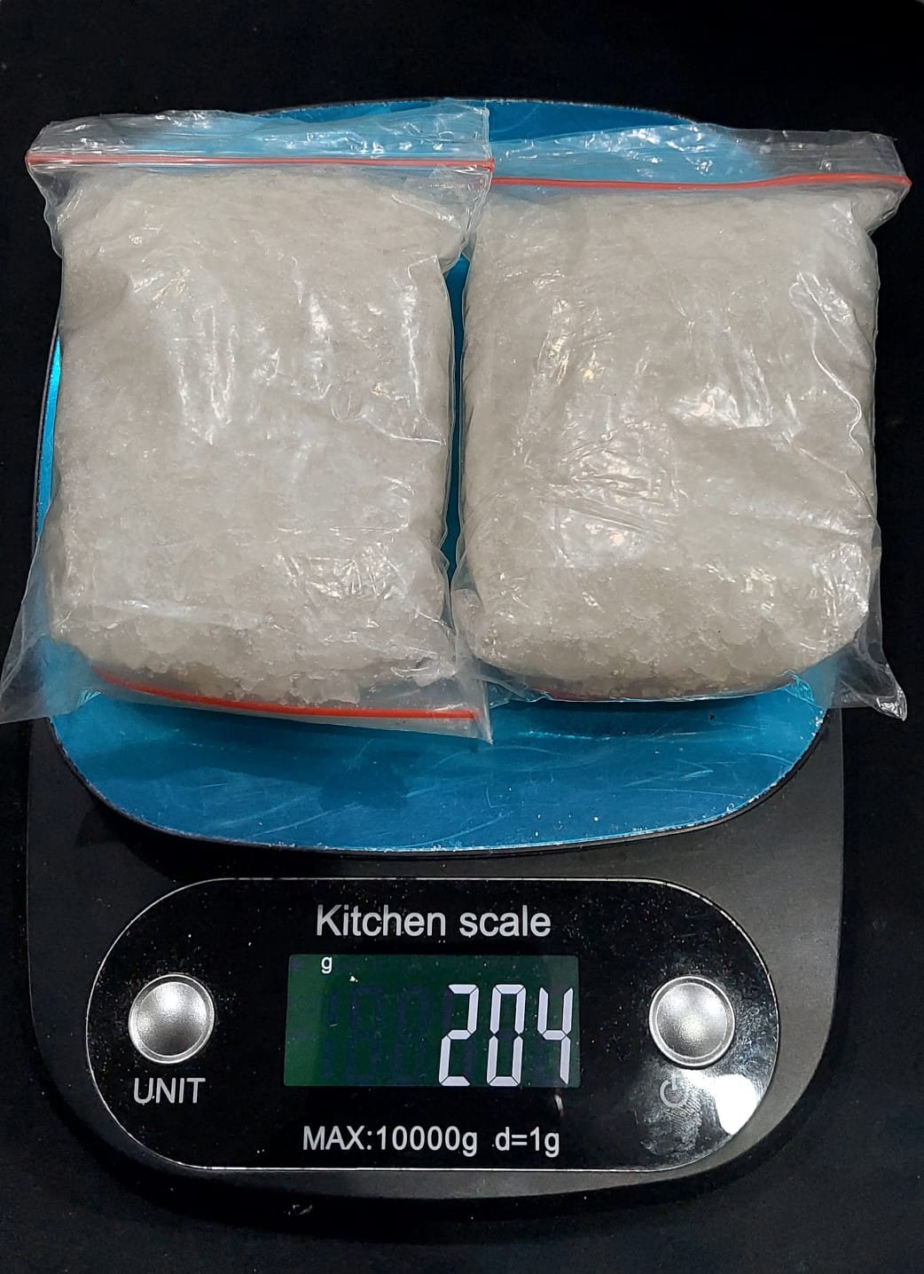 Dari hasil penggeledahan, petugas menemukan dua paket sabu dengan berat bruto 204 gram yang disimpan di dalam saku depan pakaian tersangka. Selain itu, turut diamankan uang tunai sebesar Rp178.000 serta bungkusan plastik hitam berlapis lakban yang digunakan untuk menyamarkan barang bukti.