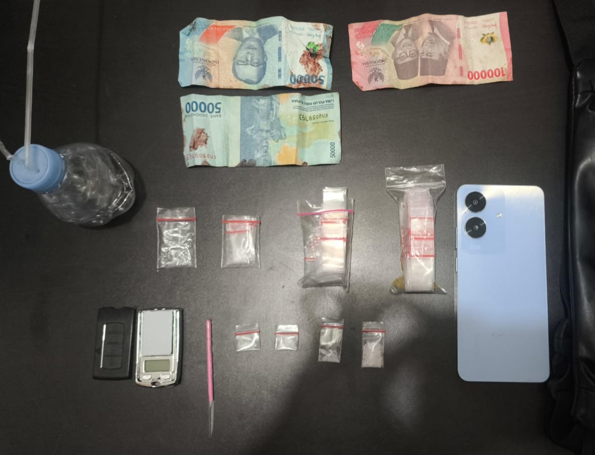 Selain itu, di atas kasur ditemukan tas selempang hitam berisi tiga paket sabu tambahan, satu bal plastik klip transparan, serta uang tunai sebesar Rp200.000. Secara keseluruhan, barang bukti yang diamankan berupa empat paket sabu dengan berat bruto 1,09 gram, dua bal plastik klip, timbangan digital, alat bantu, serta barang bukti pendukung lainnya.