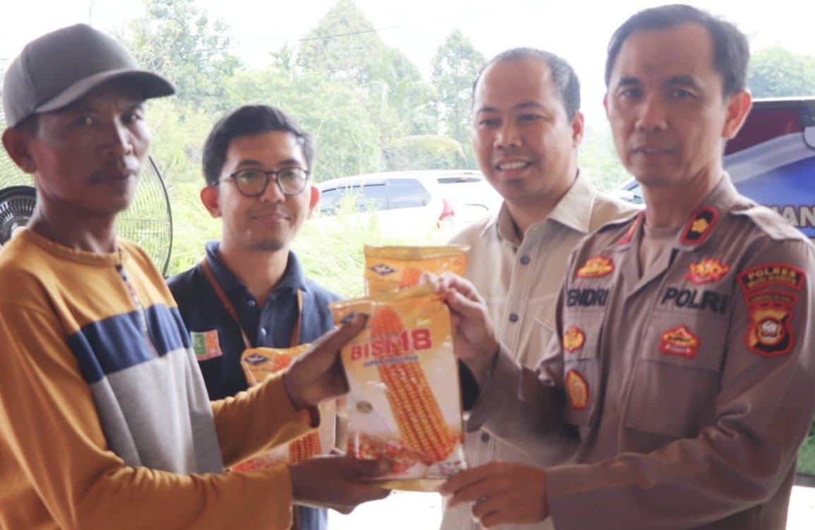 Dalam kesempatan itu, Wakapolres bersama stakeholder memberikan bantuan bibit jagung kepada Bapak Riduan kelompok Tani Cipta Karya, dengan luas lahan lebih kurang 2 hektare.
