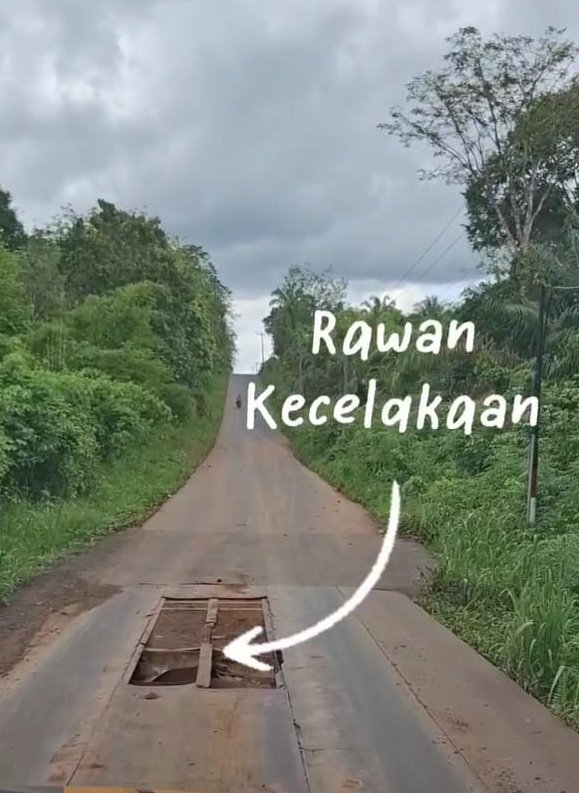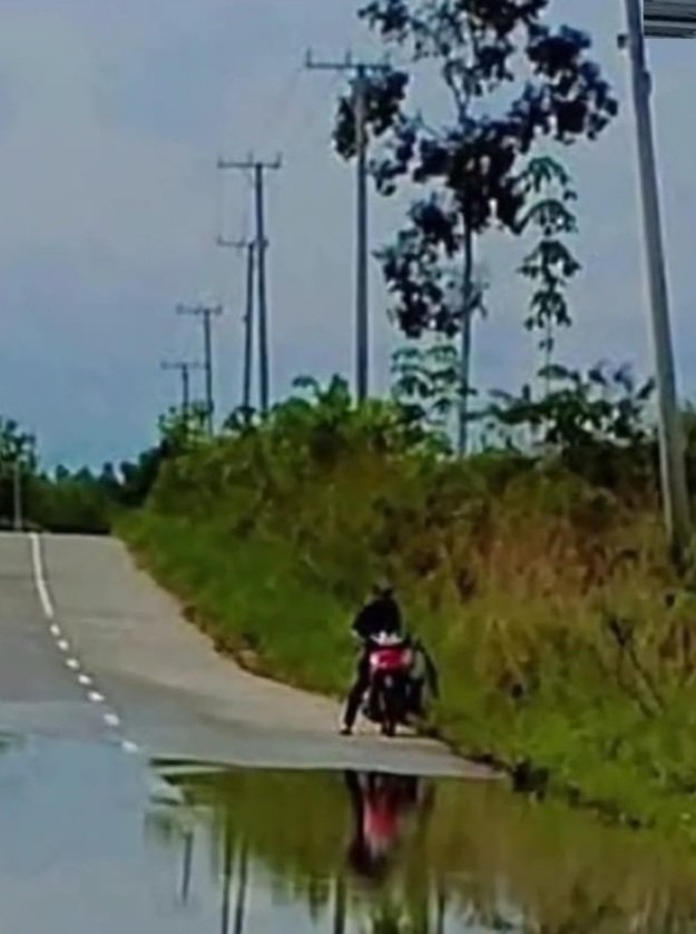 Petugas patroli mendapati adanya genangan air di sepanjang jalan cor yang menutupi permukaan jalan serta kondisi jembatan besi yang mengalami kerusakan, yakni terdapat lubang di bagian tengah jembatan yang berisiko menimbulkan kecelakaan lalu lintas.