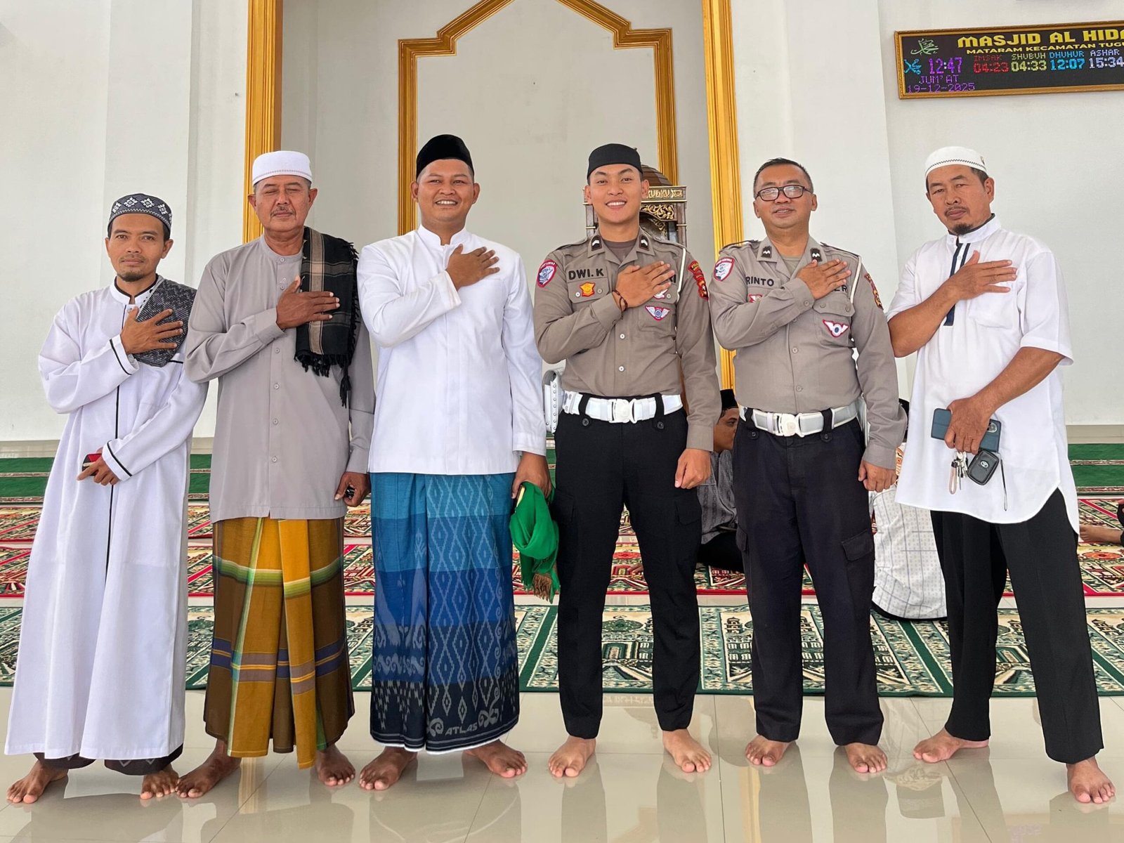 Program ini diwujudkan dengan keterlibatan langsung personel Satlantas Polres Musi Rawas, Bripda M. Dwi Kurniawan, yang bertugas sebagai bilal Salat Jumat di Masjid Al Hidayah, Desa G1 Mataram, Kecamatan Tugumulyo, Kabupaten Musi Rawas, Jumat (19/12/2025).