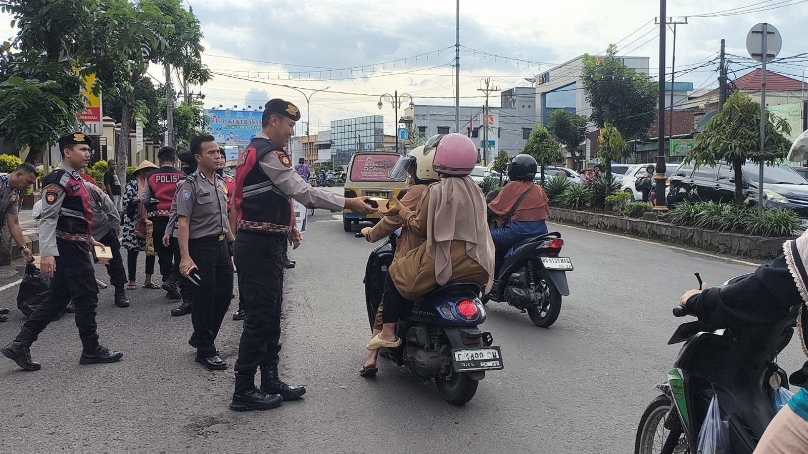 Dengan senyum ramah, para personel kepolisian menghampiri satu per satu masyarakat. Fokus utama aksi ini adalah mereka yang tengah berjuang di jalanan: para pedagang kaki lima yang tetap melayani pembeli, tukang ojek yang menanti penumpang, hingga tukang parkir yang masih setia mengatur kendaraan.