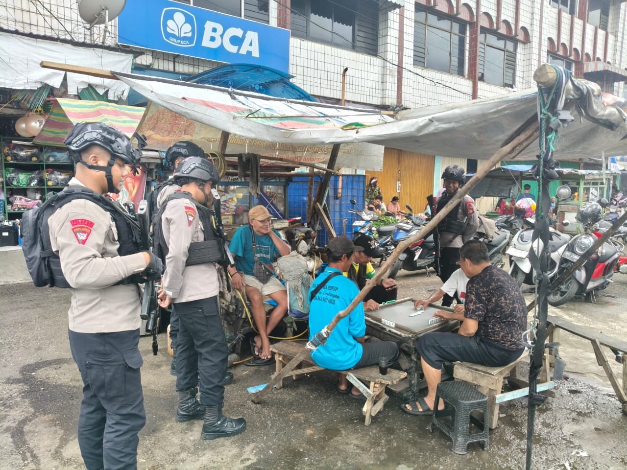 Kegiatan patroli tersebut menyasar sejumlah lokasi yang menjadi pusat aktivitas warga, di antaranya pasar tradisional, kawasan pertokoan, serta lingkungan permukiman.