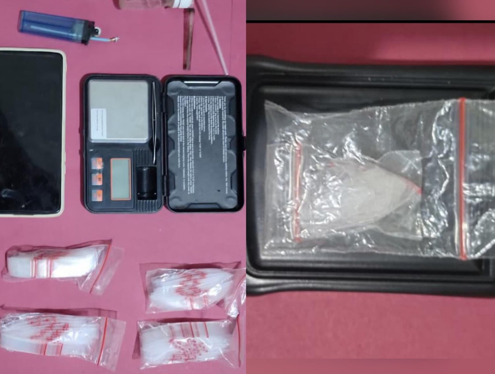 Tersangka digerebek petugas saat berada di dalam rumahnya sendiri. Saat dilakukan penangkapan dan penggeledahan, petugas menemukan sejumlah barang bukti berupa satu plastik klip berisi kristal putih diduga narkotika jenis sabu seberat 3,11 gram bruto, satu unit timbangan digital warna hitam, empat ball plastik klip bening, serta satu set alat hisap sabu (bong). Hasil tes urine terhadap terduga juga menunjukkan positif (+) narkotika.