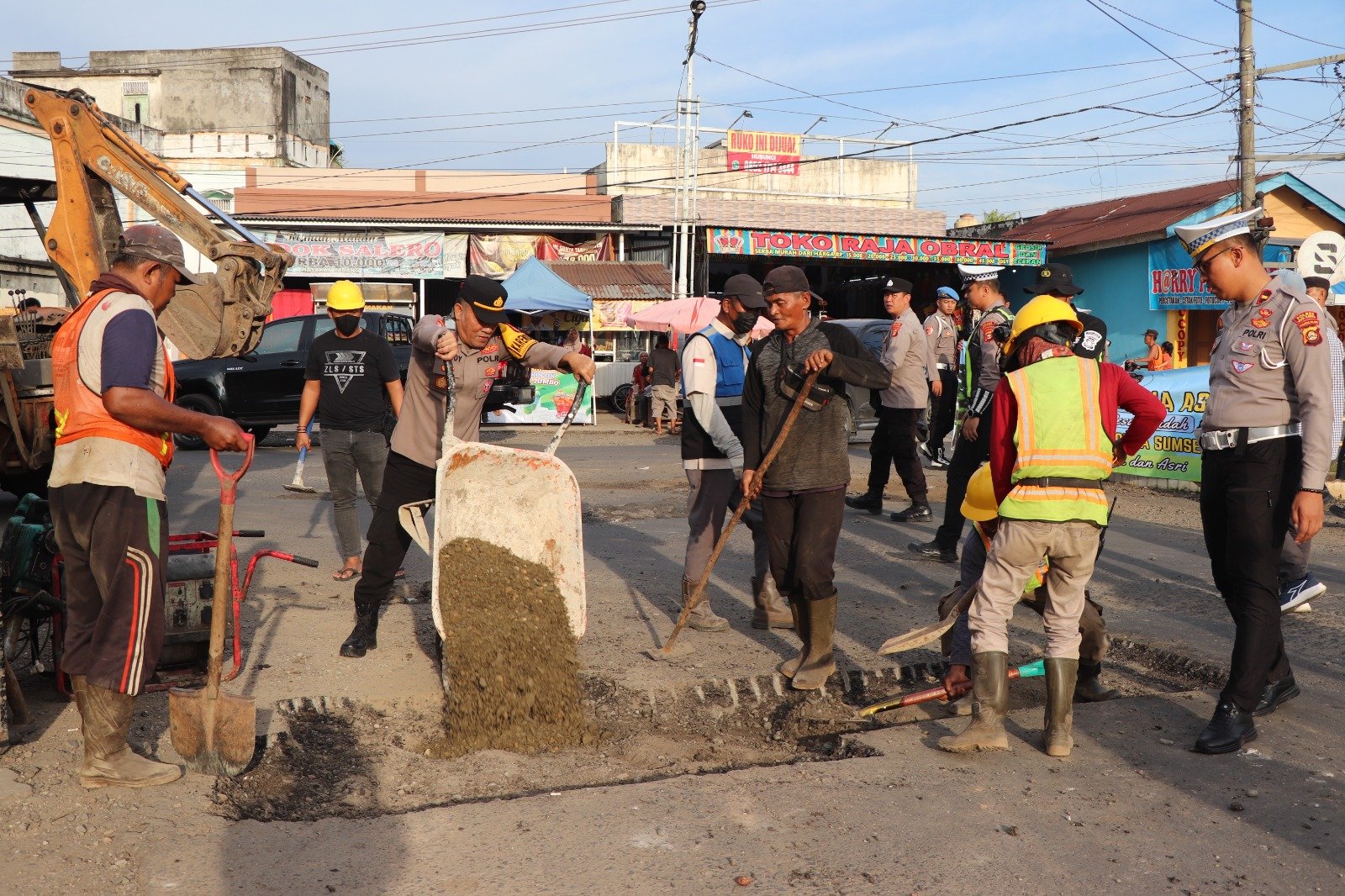 Sukseskan Program Belida Polda Sumsel dan Dukung Indonesia Asri. Kapolres Musi Rawas Bersama Stakeholder Pimpin Penambalan Jalan Berlubang,